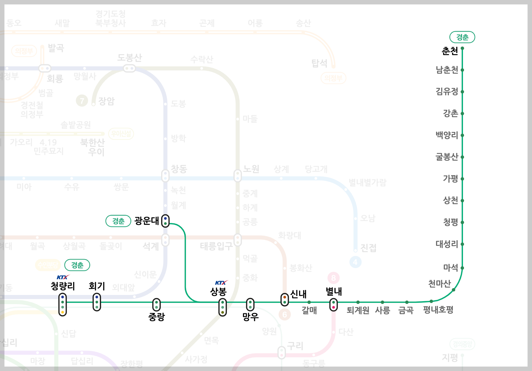 | 퇴계원역 방면 | 춘천역 | 23:27 |