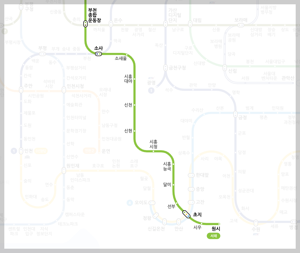 초지역 서해선 전철 노선도 및 시간표 안내