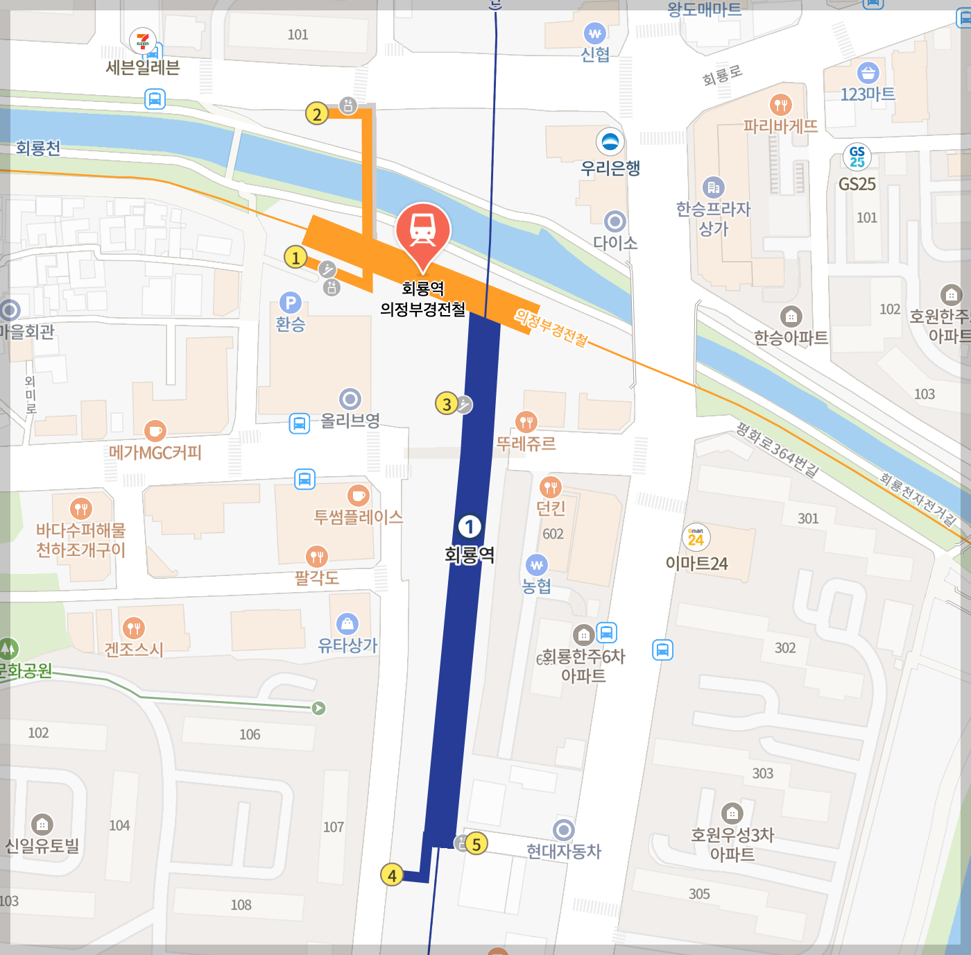 | 5번 출구 | 회룡역, 호원동.한주3.4차아파트 |