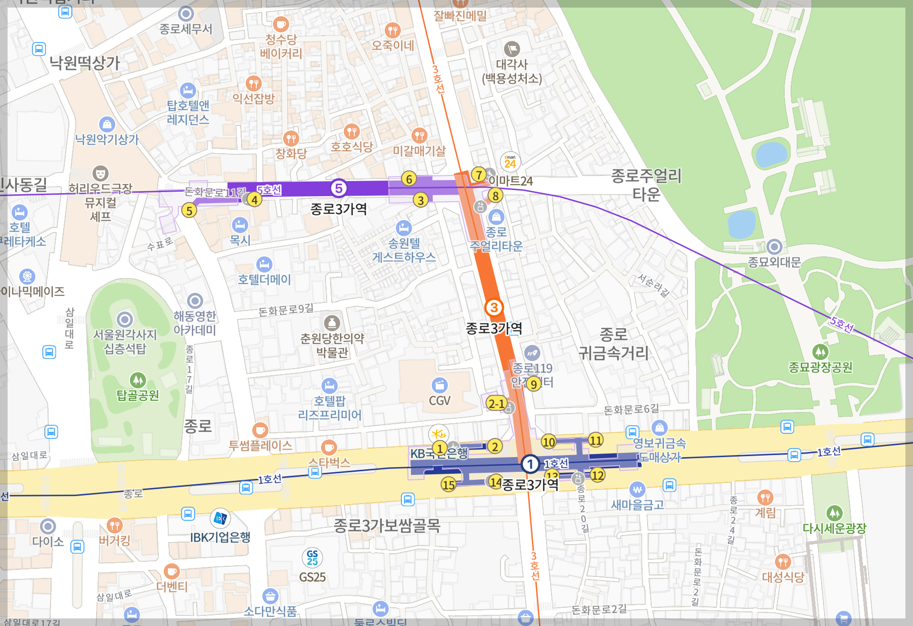 5호선 종로3가역 출구정보