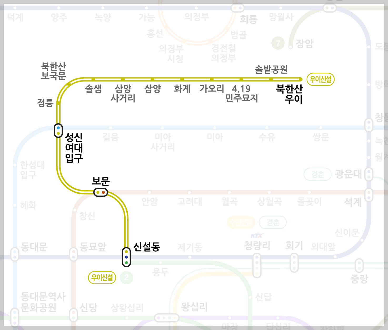 신설동역 우이신설 경전철 노선도 및 시간표 안내